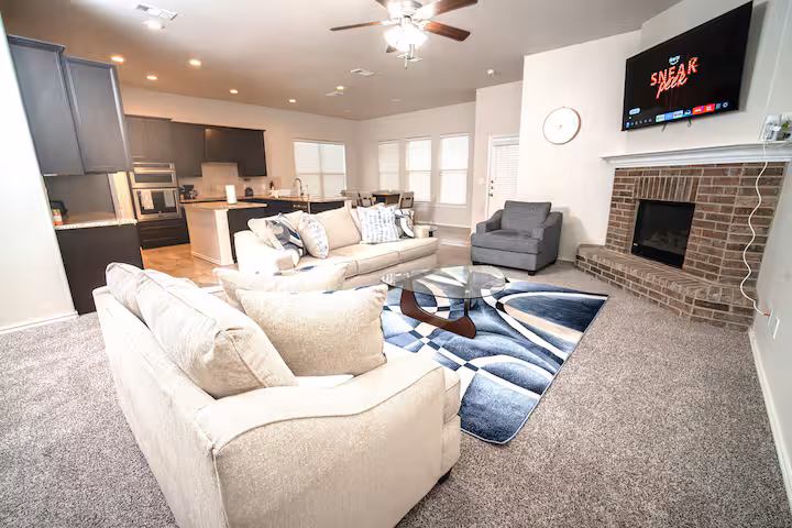 Welcome to Laughlin Lodge, your inviting home base in Midland. With 4 bedrooms, 3 full bathrooms, and 8 comfortable beds. 50-inch smart TV in every room. Ideal for large families, friend getaways, group retreat or business teams needing room to relax and recharge.